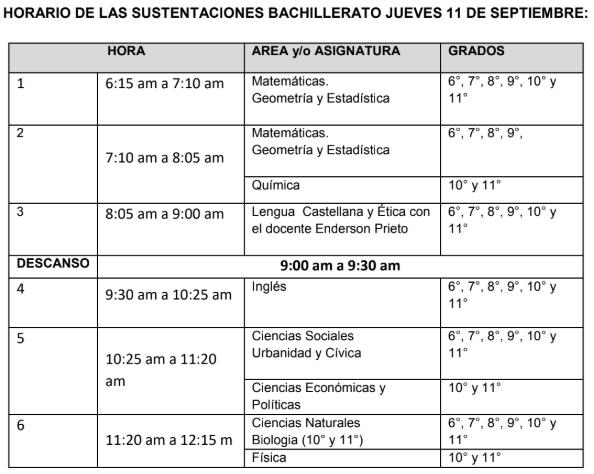 - Las estudiantes de la Media Técnica del grado once tendrán sus clases de 11:00am a 2:00pm.